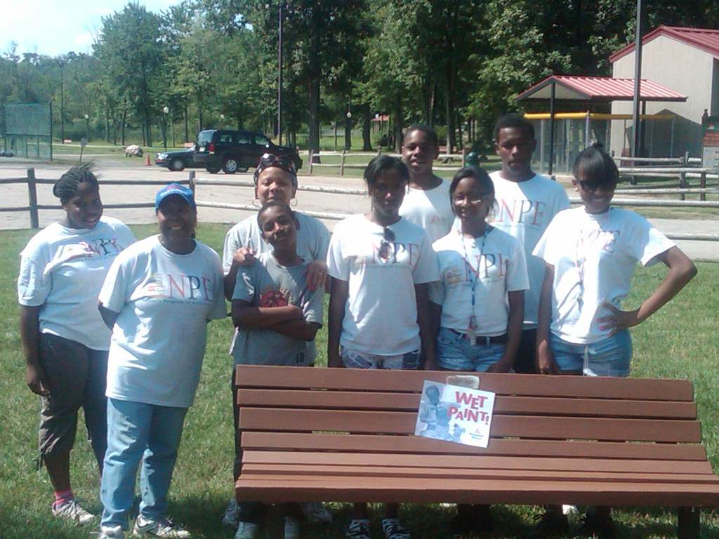 During July 2011, the NPE High School Youth Council repaired and cleaned up Eugene Levy Park in Pomona. The children painted various items in the park, raked and did other general cleanup. Check out some pictures from the cleanup below.